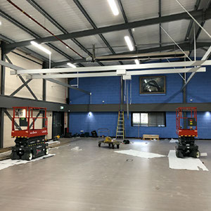 An impressive system installed at @HadrianSchool in Newcastle, spanning 23m long and 8m wide. The room is now ready for the trampolines.