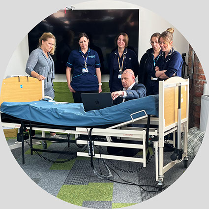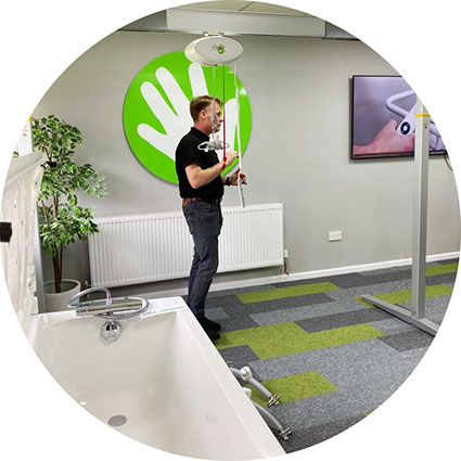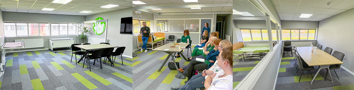 Our Elland training room is a purpose-built space offering teams ample room for manual handling training and group meetings. Fully equipped with Guldmann ceiling track hoists, both Guldmann GH1 & GH3 Trainer unit, full range of Guldmann slings, Guldmann Gantry, bed, Ropox bathtub, Ropox Mobilio, Ropox Quickwash and Ropox Changing table.