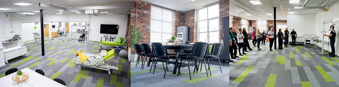 Our Peterlee training room is a purpose-built room to offer small groups space for manual handling training. Fully equipped with Guldmann ceiling track hoist, Guldmann Gantry, bed, Ropox bathtub and changing table.