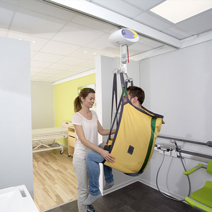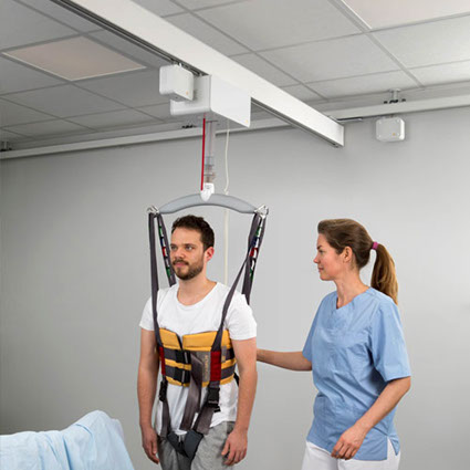 The wall mounted rail system is a discreet system that creates a safe, comfortable and efficient solution for lifting and transferring of persons with loss of function.